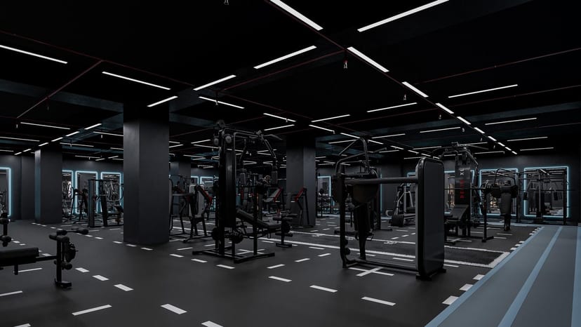 Özel tasarım aydınlatma, ergonomik yerleşim, lüks soyunma odaları ve antrenman sonrası ücretsiz sauna kullanımı.